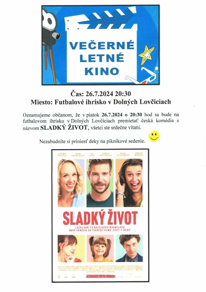 Večerné letné kino v Dolných Lovčiciach - 26.7.2024 Večerné letné kino v Dolných Lovčiciach - 26.7.2024